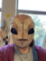 Owl mask made from EVA foam, foam clay, and black buckram.